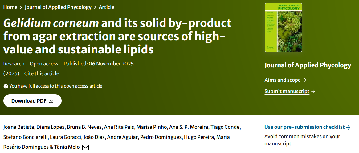 Gelidium corneum and its solid by-product from agar extraction are sources of high-value and sustainable lipids